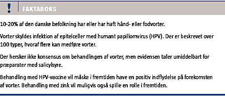Verruca vulgaris (vorter) forekommer især hos børn, og det anslås, at 10-20% af den danske befolkning har eller har haft hånd- eller fodvorter [1]. Vorter er for det meste harmløse og selvlimiterende, men kan blive smertefulde, når de er lokaliserede på fodsålerne og ved neglene.