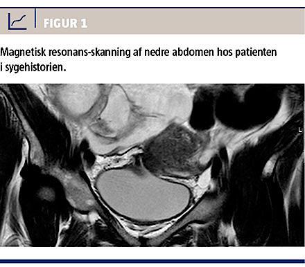 På en urologisk afdeling behandlede man en 32-årig kvinde med dette syndrom. Fire måneder efter at have fået foretaget et kejsersnit, blev hun henvist til et sygehus pga. hæmaturi og urin per vaginam. Primær mistanke var en vesikovaginal fistel. Dette blev bekræftet ved installation af methylenblåt i blæren, hvorefter man så blå farve i fornix posterior. Senere undersøgelser med CT-urografi og -cystografi bekræftede ikke denne diagnose. Knap et år efter kejsersnit blev hun henvist til OUH til videre udredning og behandling. Man havde endnu ikke visualiseret en fistel, og patienten var nu meget påvirket af symptomerne i sin hverdag med urinafgang per vaginam og makroskopisk hæmaturi under menstruation. Ved cystoskopi og magnetisk resonans-(MR)-skanning (Figur 1) blev der fundet en fistel mellem vesica og uterus. Fistlen i blæren blev excideret, og uterus blev fjernet efter patientens ønske. Hun blev udskrevet i velbefindende.